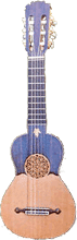 Utiliza 5 cuerdas dobles, aunque también se fabrican de 4. Tiene al menos 2 octavas, es decir, como mínimo 14 trastes.
